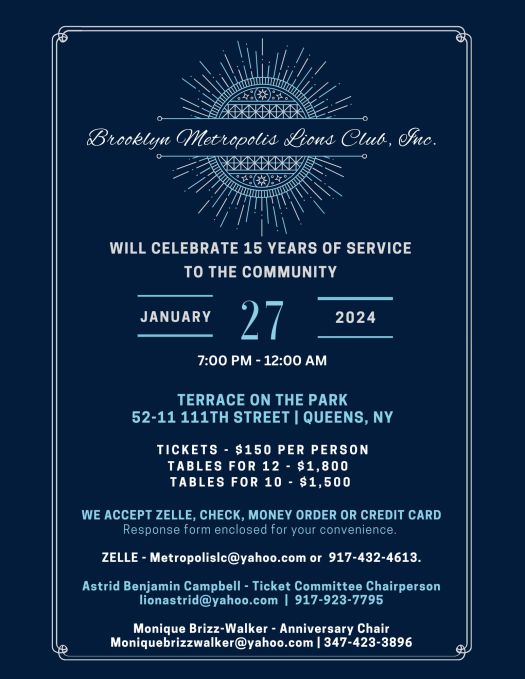 – To pay via credit card, please complete the form, accessible here, and follow the instructions for mailing to Brooklyn Metropolis Lions Club.