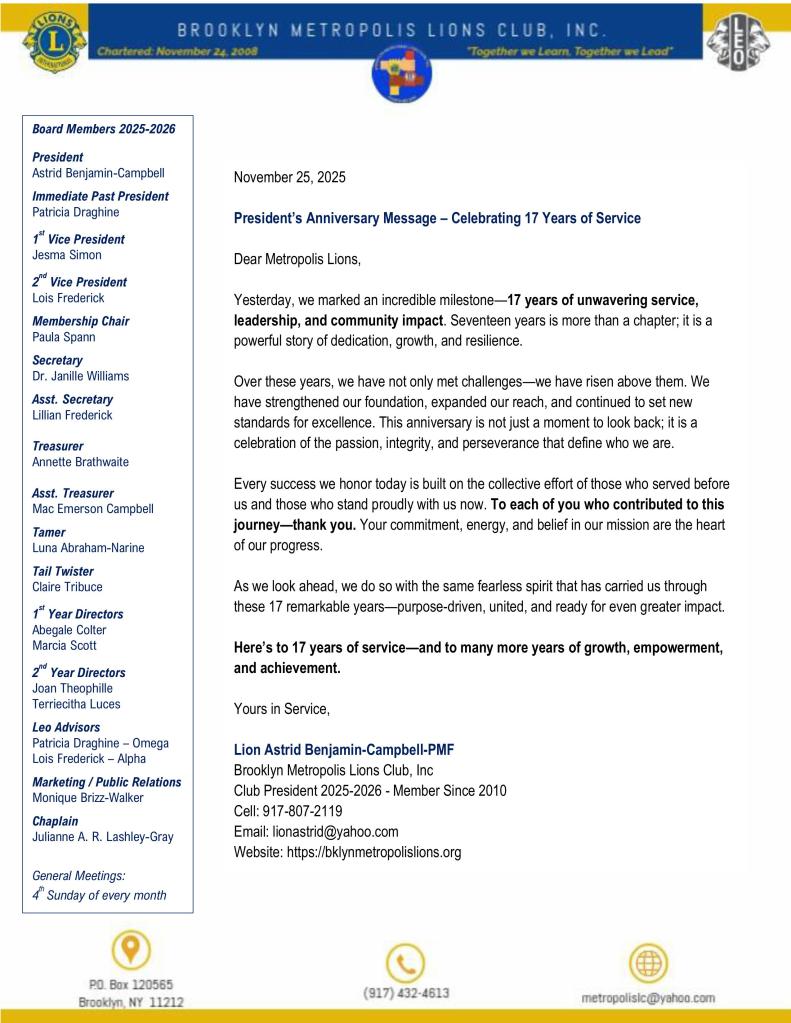 PRESIDENT’S ANNIVERSARY MESSAGE – CELEBRATING 17 YEARS OF SERVICE
